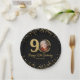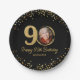 Prato De Papel 90 Birthday Foto Elegante Negra Dourada Brilhante