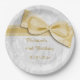 Prato De Papel 95th Damasco Dourado do aniversário e arco do