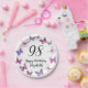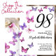 This pretty and whimsical 98th birthday paper plate is perfect for a nice party and will set a fun and celebratory tone. This design features pink and purple butterflies, and is a nice feminine choice for a special event to celebrate a milestone birthday. Customize for your own birthday year, and search for "98" in my shop to see coordinating designs.