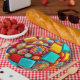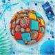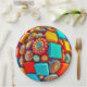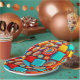 The image of colorful geometric shapes covers the front of this 7" round paper plate. This unique design will add color and vibrancy to your party decor!