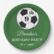 9th Birthday party for a soccer fan, sports, kids, boys, for him. Green and white, modern, elegant Birthday party paper plates. Please personalize it with your details.