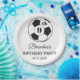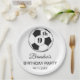 9th Birthday party for a soccer fan, sports, kids, boys, for him. White, modern, elegant Birthday party paper plates. Please personalize it with your details.
