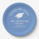 Festas de formatura. Tableware de formando 2023. Que comece a aventura! Cor azul e branca.