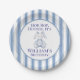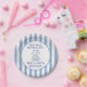 Celebrate your little one’s special day with this adorable bunny-themed design, perfect for a first birthday party. Featuring a plush blue bunny illustration, playful floral accents, and cheerful text that reads “Hop, Hop, Hooray, It’s William’s Birthday!”, this design adds a whimsical touch to any party table. The soft blue and white striped border creates a sweet vintage feel, ideal for baby boys or gender-neutral celebrations. Pair with matching invitations, napkins, and banners for a coordinated party set.