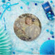 Este desenho apresenta uma pintura da artista escocesa Bessie MacNicol (1869–1904), que esteve associada à Escola de arte de Glasgow. Ela retrata uma jovem com um vestido branco sentada graciosamente sob os galhos de uma macieira. Ela segura um buquê de flores na mão esquerda e um espelho de senhora na mão direita. Seu cabelo é castanho-avermelhado e cai até a nuca; ela também tem algumas flores nos cabelos. Ela sorri para o espectador com uma alegria simples e despreocupada. As folhas da macieira são verdes atrás dela. É um dia brilhante de verão e ela parece estar sentada na grama. A obra de arte original foi pintada por Bessie MacNicol em 1899.
