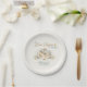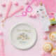 Blue storybook baby shower paper plates featuring a vintage book stack and watercolor florals create a charming and meaningful table setting for a baby boy celebration. This “A New Chapter Begins” baby shower plate design showcases softly stacked antique books topped with a classic baby pacifier, symbolizing the start of a sweet new journey. The muted blue and sage toned typography blends beautifully with the delicate botanical illustration, creating a refined and cohesive aesthetic against the crisp white background. Elegant serif lettering paired with subtle decorative flourishes gives the layout a polished, boutique inspired look that feels timeless and heartfelt. Designed specifically for a baby boy shower honoring one mom-to-be, this literary themed baby shower plate pairs effortlessly with neutral blue décor, garden inspired styling, rustic elegance themes, and book lover baby shower celebrations. Ideal for dessert tables, cake displays, and coordinated place settings, these storybook baby shower paper plates add a thoughtful and sophisticated finishing touch to a beautifully curated baby boy event.