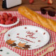 Este elegante prato de aniversário de outono é perfeito para um aniversário de outono moderno. A simples design apresenta folhas caídas com elegante tipografia negra e vermelha sobre fundo branco.