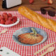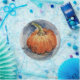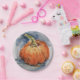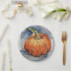 Uma adorável aquarela Pumpkin em tons de laranja com um fundo azul.