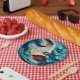 Keywords: abstract impasto painting, tactile texture art, female face artwork, ocean waves background, blue and green hues, red lips painting, oil on canvas, contemporary abstract art, textured surface painting, modern expressionism.