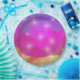A vibrant low-poly abstract design featuring sharp geometric triangles in bright neon pink, purple, and gold. Sparkling light flares add a magical, glowing touch to this futuristic digital crystal mosaic.