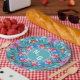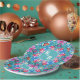 Chapas de papel brilhantes e coloridas, com seus monogramas personalizados.