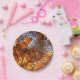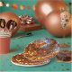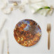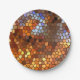 Estas placas de papel decorativas caracterizam um teste padrão abstrato geométrico de cinco azulejos de mosaico dados forma Pentágono tomados partido em cores brilhantes do outono de vermelho, alaranjado, marrom, amarelo, ouro, azul, roxo, cinza, preto e branco.
