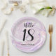 Produtos modernos, de abstrato, com efeito de borbulhamento de tinta líquida, em matizes cor-de-rosa pastel e lavandas. Linhas de Maçã Lilqueadas Modernas 18º aniversário Placas de Papel.