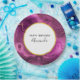 Placas de papel de aniversário com um belo design abstrato. Cor de ametista roxa escura com fitas de ouro aninhadas entre estratos em camadas. Design rica e bonita. A camada sobre o topo é uma moldura de círculo branco com uma borda falsa de folha de papel dourada, com o seu dentro de texto personalizado.
