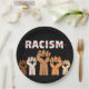 A design da justiça social apresenta texto RACISMO redinrado com múltiplos tom levantado punhos de protesto.