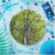 Uma fotografia que olha acima através dos ramos de um carvalho.