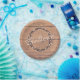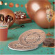 Acredite em design de texto de Natal com coroa e decoração de neve em fundo de madeira rústica