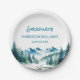 Adventure-themed graduation party plates featuring a scenic mountain and forest path design. Perfect for creating a coordinated and stylish graduation table setting for a high school or college celebration.