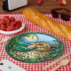 Coloridos pratos de papel de aniversário feliz em Cheeta, mude o texto para qualquer coisa que você quiser quando você pedir