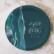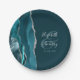 Prato De Papel Agate Geode Script Dark Teal Silver Wedding