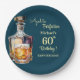 A modern birthday party design with bold numbers, a bottle of whiskey and a glass of whiskey. Customize the details for a chic birthday celebration.