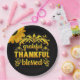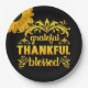 Grata, grata, abençoada tipografia em amarelo de girassol em preto com girassol no canto.