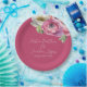 Esses pratos florais românticos apresentam um elegante fundo rosa bege com flores de ranunculus brancas e rosadas em aquarela. Um delicado buquê de ranunculus e folhagens é retratado na parte superior. Amostras de nomes de um casal recém-casado e data de casamento são impressas na parte superior. Você pode personalizar os pratos para incluir seus próprios nomes ou texto personalizado.