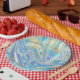 Prato De Papel Água pearlescente e Dourado mármore líquido
