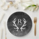 Prato De Papel Aguarela preta e monograma rústico dos Antlers dos