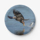 Prato De Papel Águia Cálida imatura derrubando um peixe
