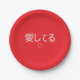 Add a touch of international romance to your celebration with this red paper plate featuring elegant white Japanese typography that reads “愛してる”, accented by a simple white heart outline beneath the text. Meaning I love you in Japanese (Aishiteru), this design blends timeless Valentine charm with a clean, minimalist aesthetic.