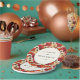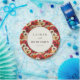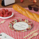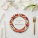Este prato de casamento apresenta um vibrante padrão floral com papoulas densamente compactadas em tons de vermelho profundo, rosa suave, branco cremoso e centros amarelos, criando um pano de fundo animado e colorido. O design inclui um círculo branco central bordeado por uma linha preta fina, onde uma tipografia elegante exibe os nomes e a data em fontes serifadas e não serifadas contrastantes. O estilo de representação semi-realista captura detalhes essenciais, ao mesmo tempo em que mantém uma aparência estilizada, transmitindo um clima alegre e festivo perfeito para celebrar ocasiões especiais como casamentos.