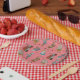 Alice no País das Maravilhas. Uma colagem de personagens pintados à mão dá vida a esta história infantil clássica: Apresentando Alice, A Rainha dos Corações, Rei dos Corações, Humpty Dumpty, O Chapéu Louco e o Coelho Branco. Personalizar a cor de fundo para corresponder à decoração