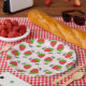Prato De Papel Almofada fofa design contínuo morangos fundo rosa