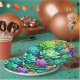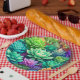 Arte IA que retrata plantas saudáveis verdes, roxas, laranja e azuis suculentas arte ai.