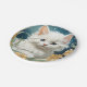 Papelão com um gatinho no estilo Art Nouveau de Alphonse Mucha! Um gatinho branco e fofo com poses azuis com flores amarelas. Um presente bonito para amantes de gatos e colecionadores de Art Nouveau!