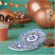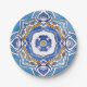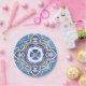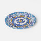 Design azul, amarelo e verde sobre fundo branco como visto em azulejos mediterrânicos