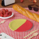 Esta placa de papel tem o amarelo de um lado e o vermelho do outro.