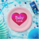 Esta placa de papel apresenta um coração cor-de-rosa comprido com uma aparência semelhante a vidro sobreposta pelo texto personalizável de modelo, "Amor Bebê" - perfeito para um chá de fraldas de menina, batismo ou festa de aniversário. A imagem do coração de vidro rosa quente é apropriada para festas de noivado, casamentos, chás de panela, comemorações de aniversário e qualquer ocasião que exija uma expressão de amor.