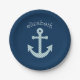 Prato De Papel Âncora de Bolinhas Azul Escuro com Nome Personaliz