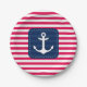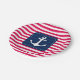 Prato De Papel Âncora de faixas Marinho Vermelho Branco Náutico