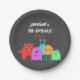 Um convite de aniversário adorável assustador para miúdos com um tema do monstro e uma multi polca colorida pontilhou o fundo, caracterizando monstro bonitos.