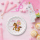 Prato De Papel Aniversário cor-de-rosa da vaqueira de Polkadot