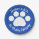 Estas placas de papel indicam um impressão branco da pata em um fundo azul com o texto de sua escolha. São grandes para o impressão da pata temático, o cão temático, o gato temático, ou as festas de aniversário temáticos animais.