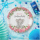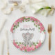 Placa de papel de festa de aniversário de menina com um elefante giro vestindo uma princesa tiara e arco rosa, e enquadrado por lindas flores rosa. Entre em contato conosco para obter ajuda com a personalização ou para solicitar produtos correspondentes.