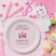 Personalize esta princesa princesa de papel, a adição perfeita a qualquer ajustado de Festa de aniversário da Little Girl para realeza! Projetado com a essência mágica de um conto de Cinderela, este prato requintado é adaptado para meninas que sonham em se tornar princesas. Adorada com uma majestosa Coroa embelezada com Joias Espumantes e Letras Rosa-Rosa contra um fundo Rosa Dusty, ela expele uma aura suave e delicada, lembrando as matizes rosadas encontradas nos grandes corredores de um palácio real.