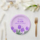 Prato De Papel Aniversário da Púrpura Floral da Tulipa Retro Eleg