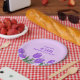 Flor de tulipa retrô com uma tipografia vibrante pratos roxos de papel de aniversário. Acessórios de festas elegantes. Personalize o texto de acordo com as suas necessidades!