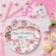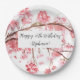 Flor de cereja, sakura, flores cor-de-rosa, pratos de papel floral bonito. Personalize-o com seu aniversário e nome.