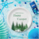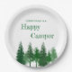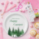Feliz aniversário de camper com árvores florestais em vários tons de verde
